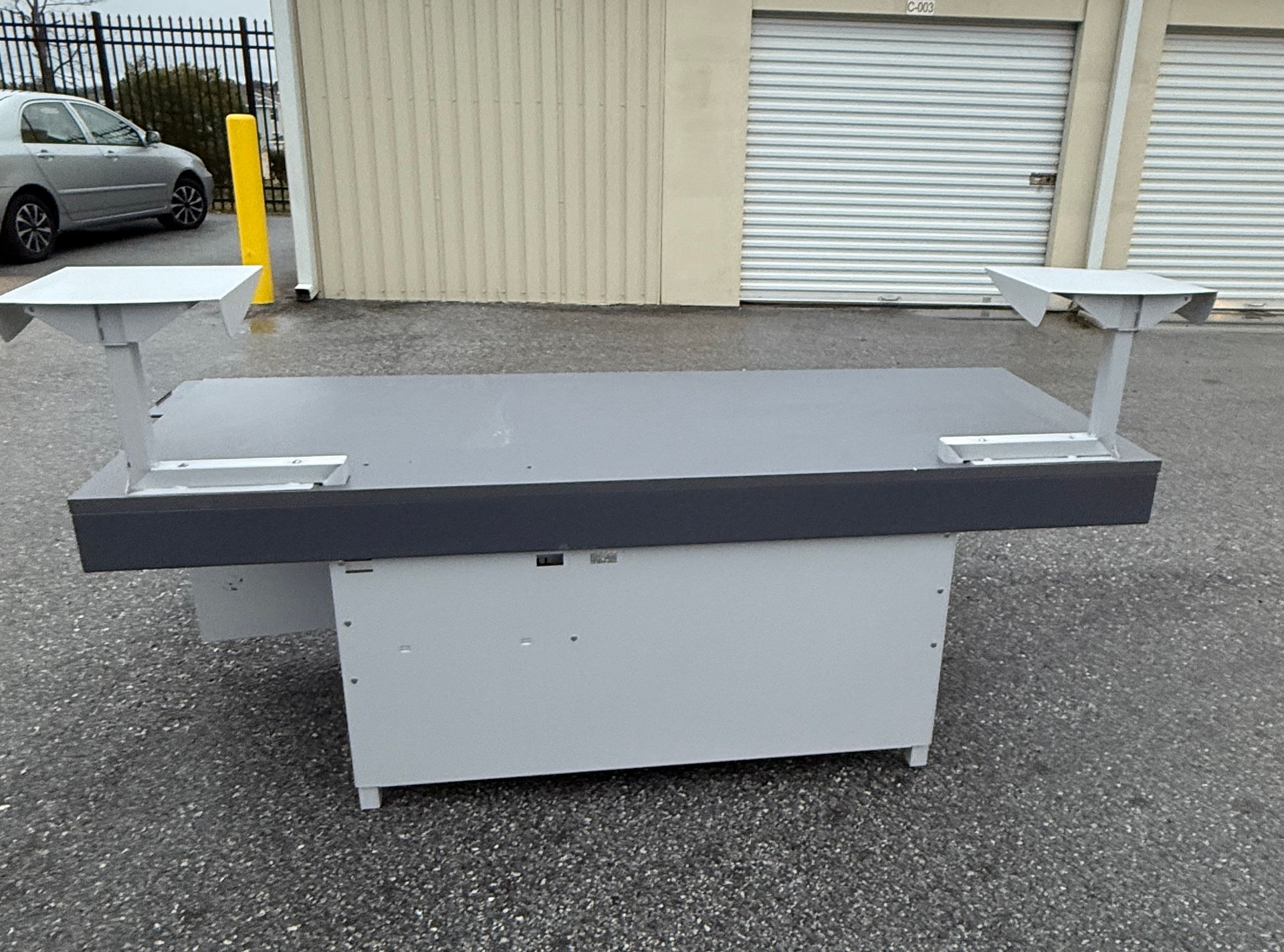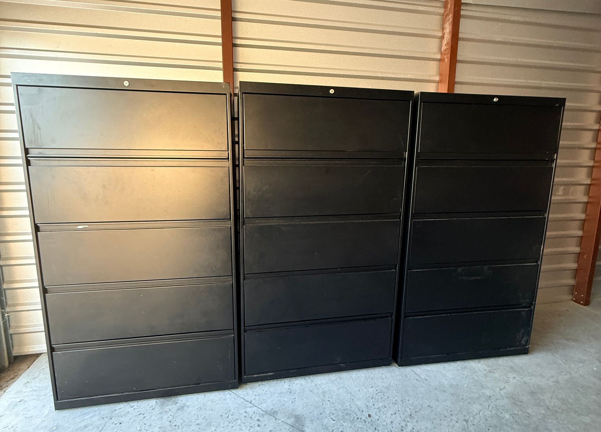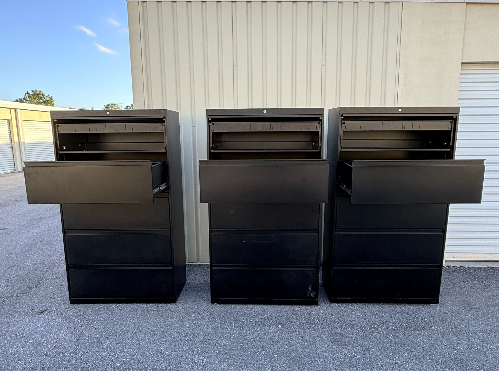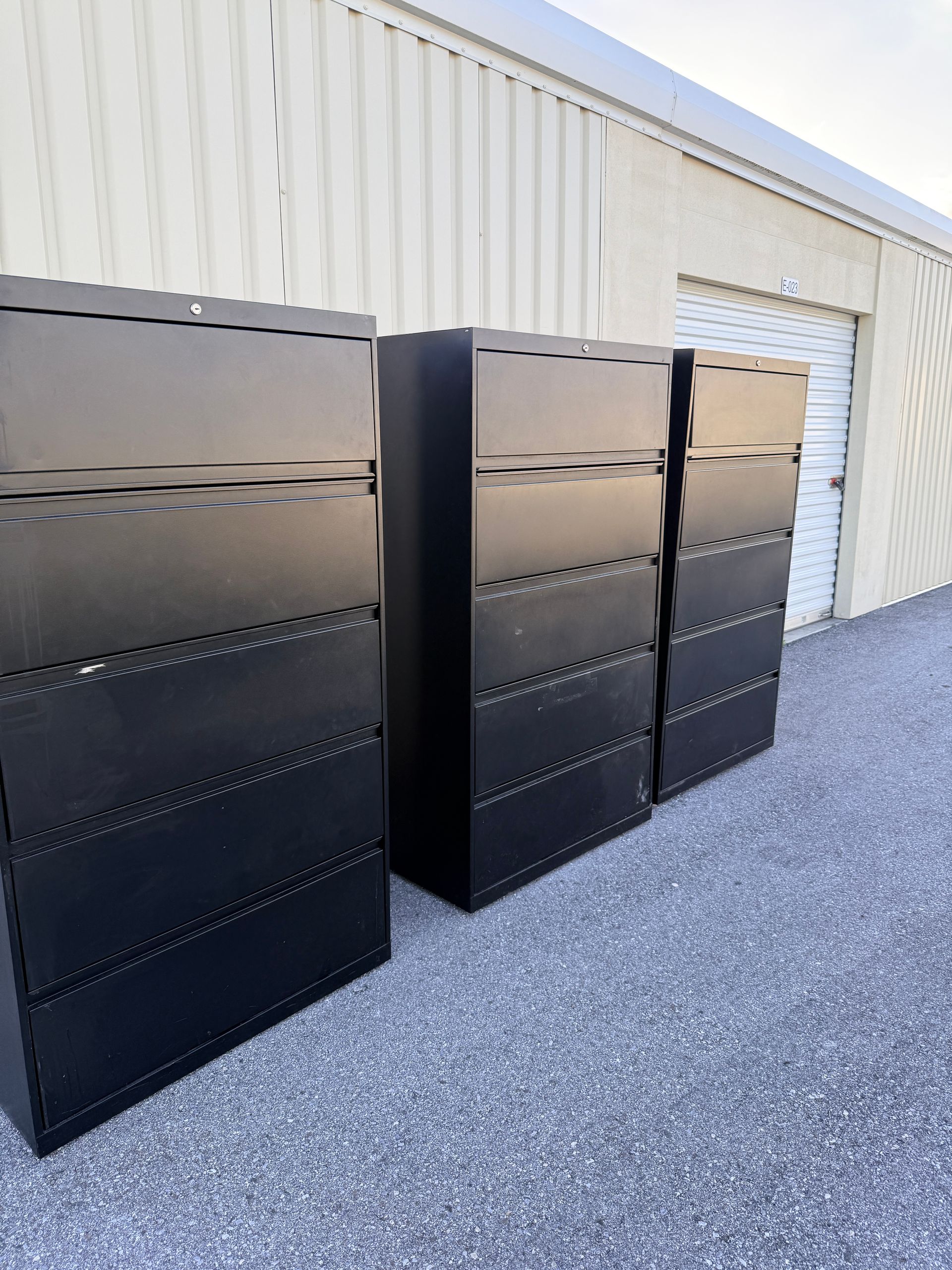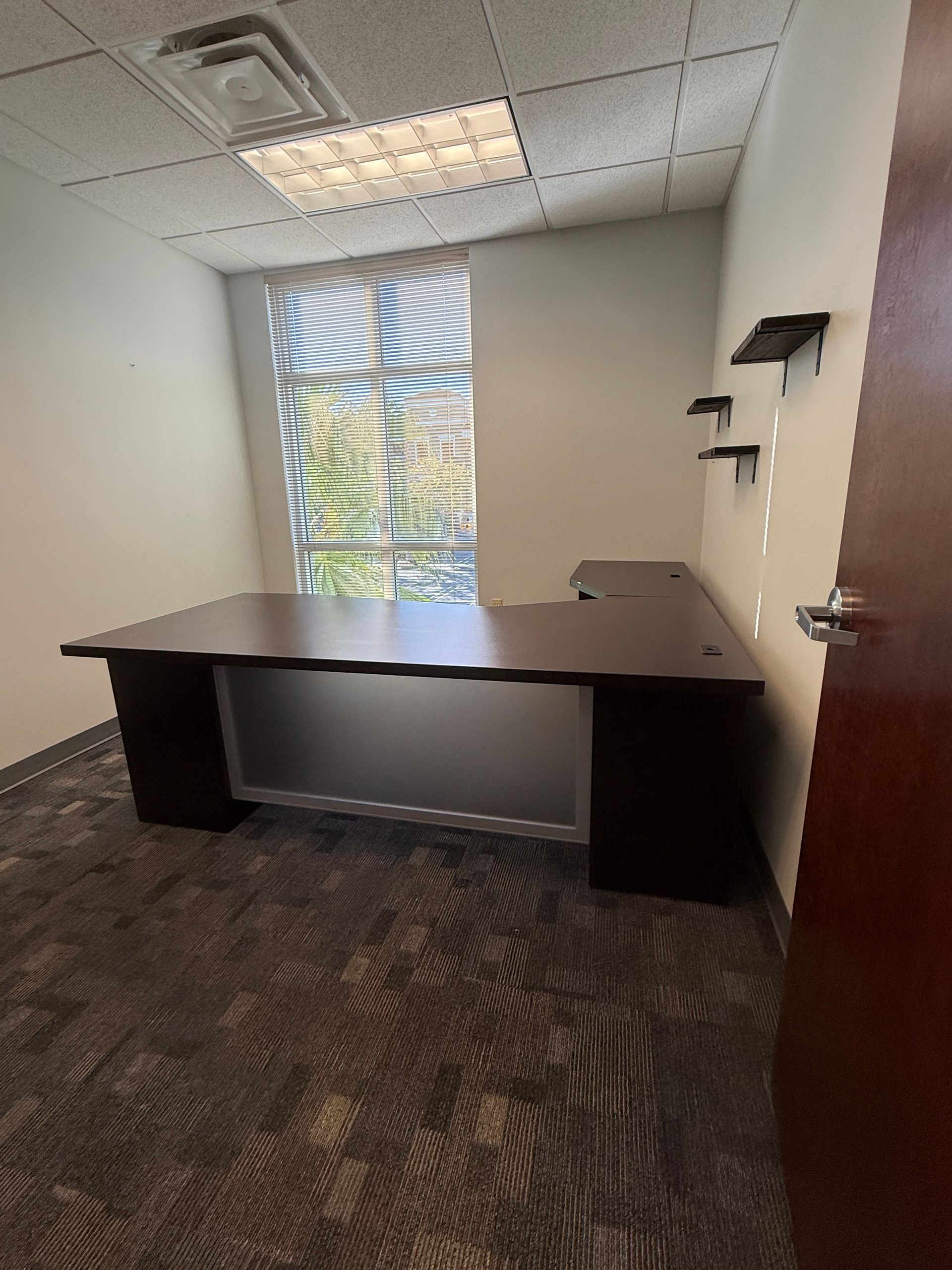 (3) U shaped with D tops with storage, (1) L Shaped with storage, (2) 2D Lats, (1) Boockase