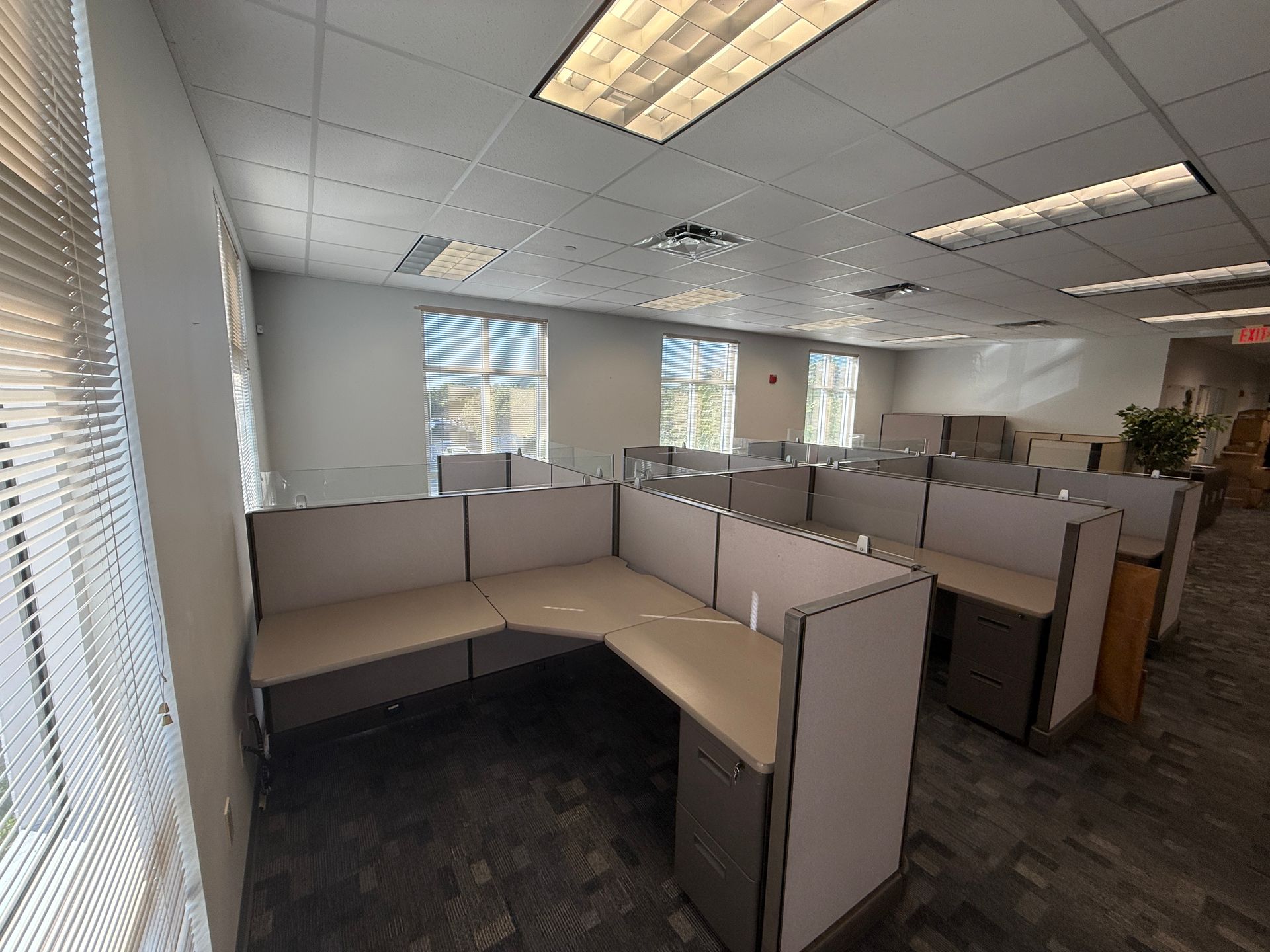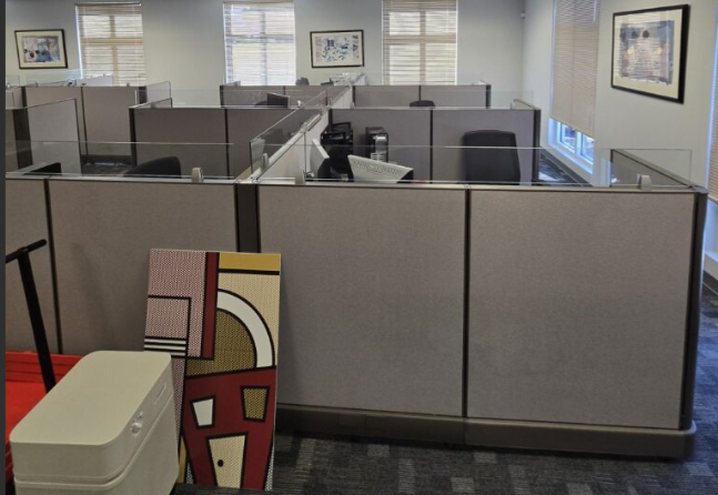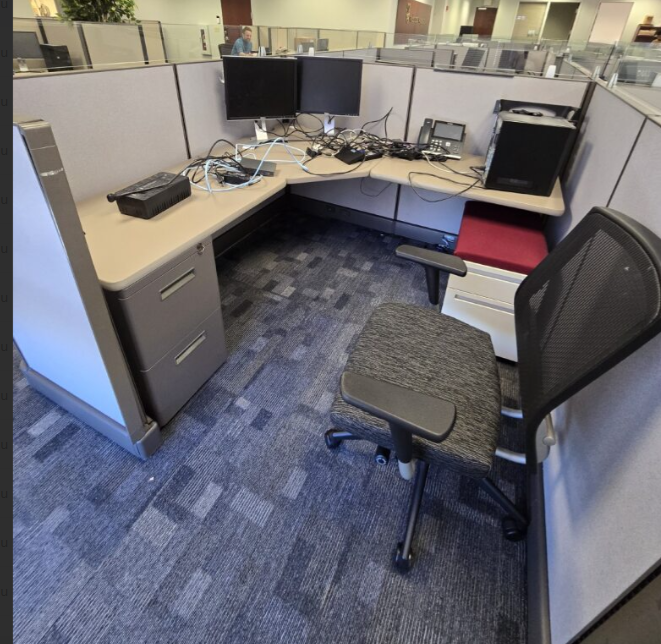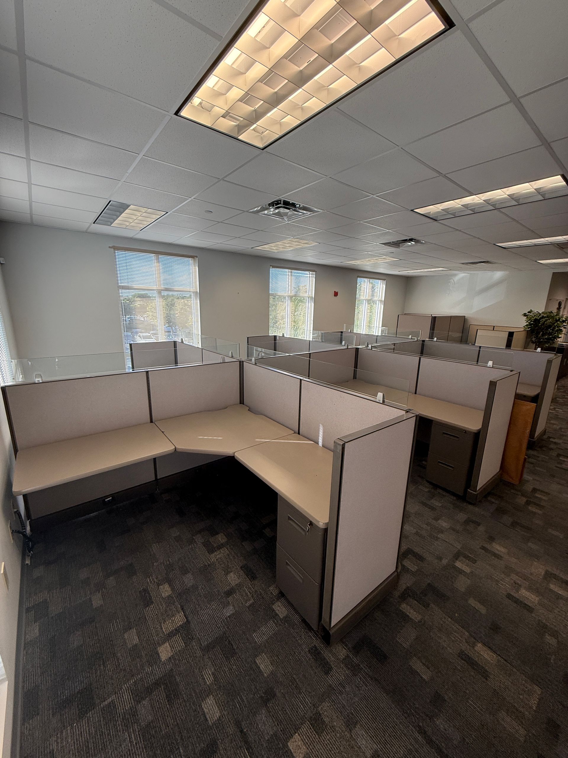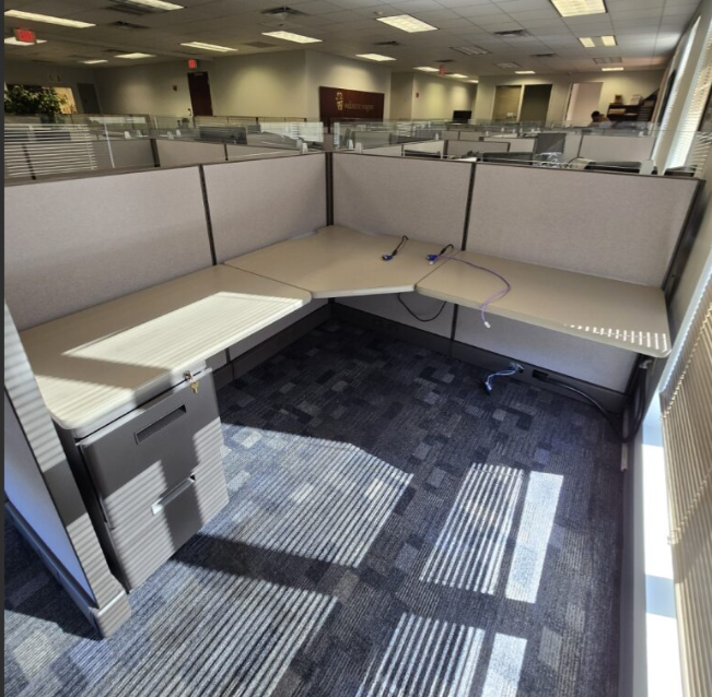 Set of eighteen, Herman Miller A02 cubicles, 72" X 72" X 48"H, file file pedestal, 6" glass toppers, powered raceways, notched corner grommets, HPL surfaces