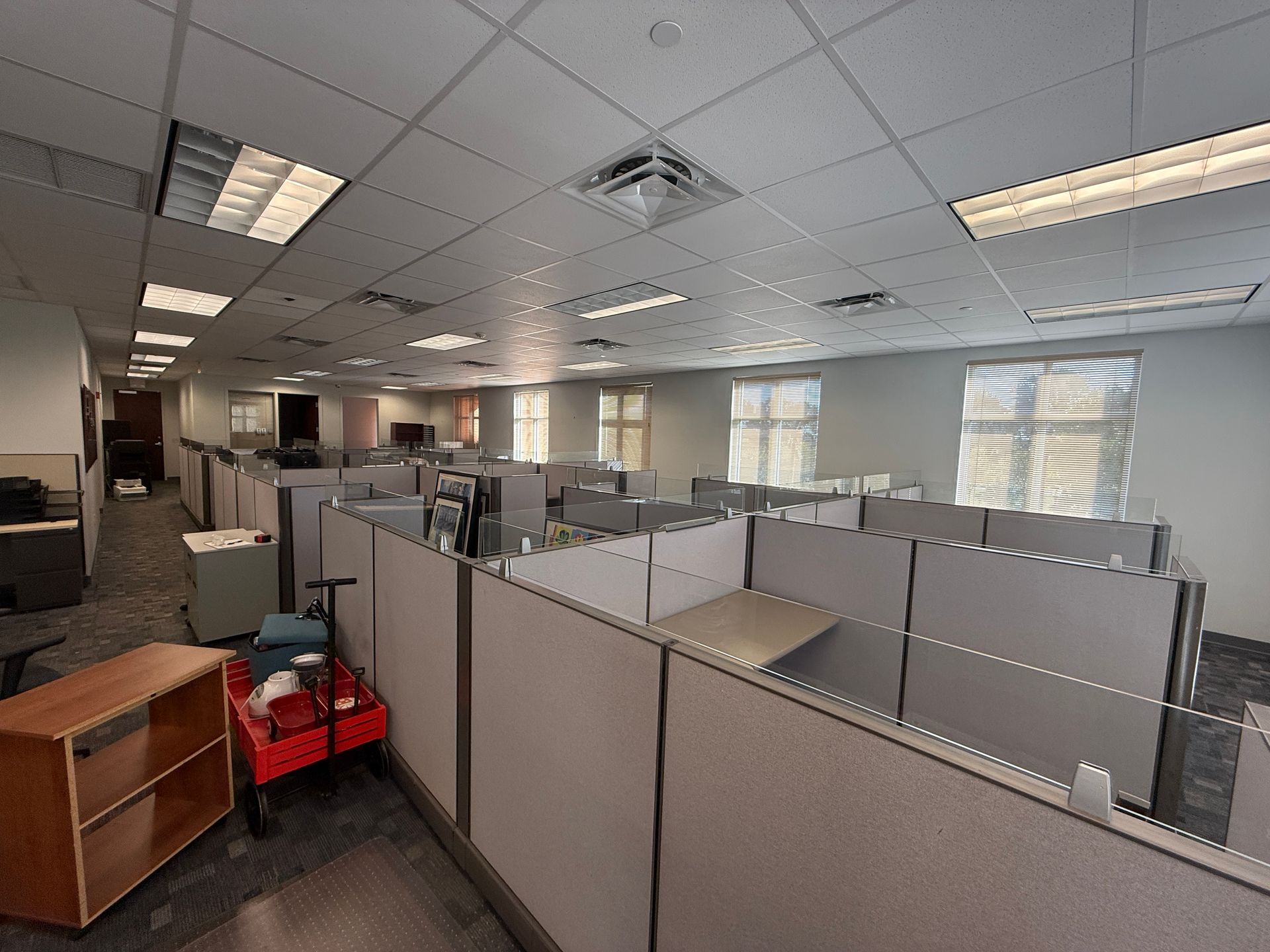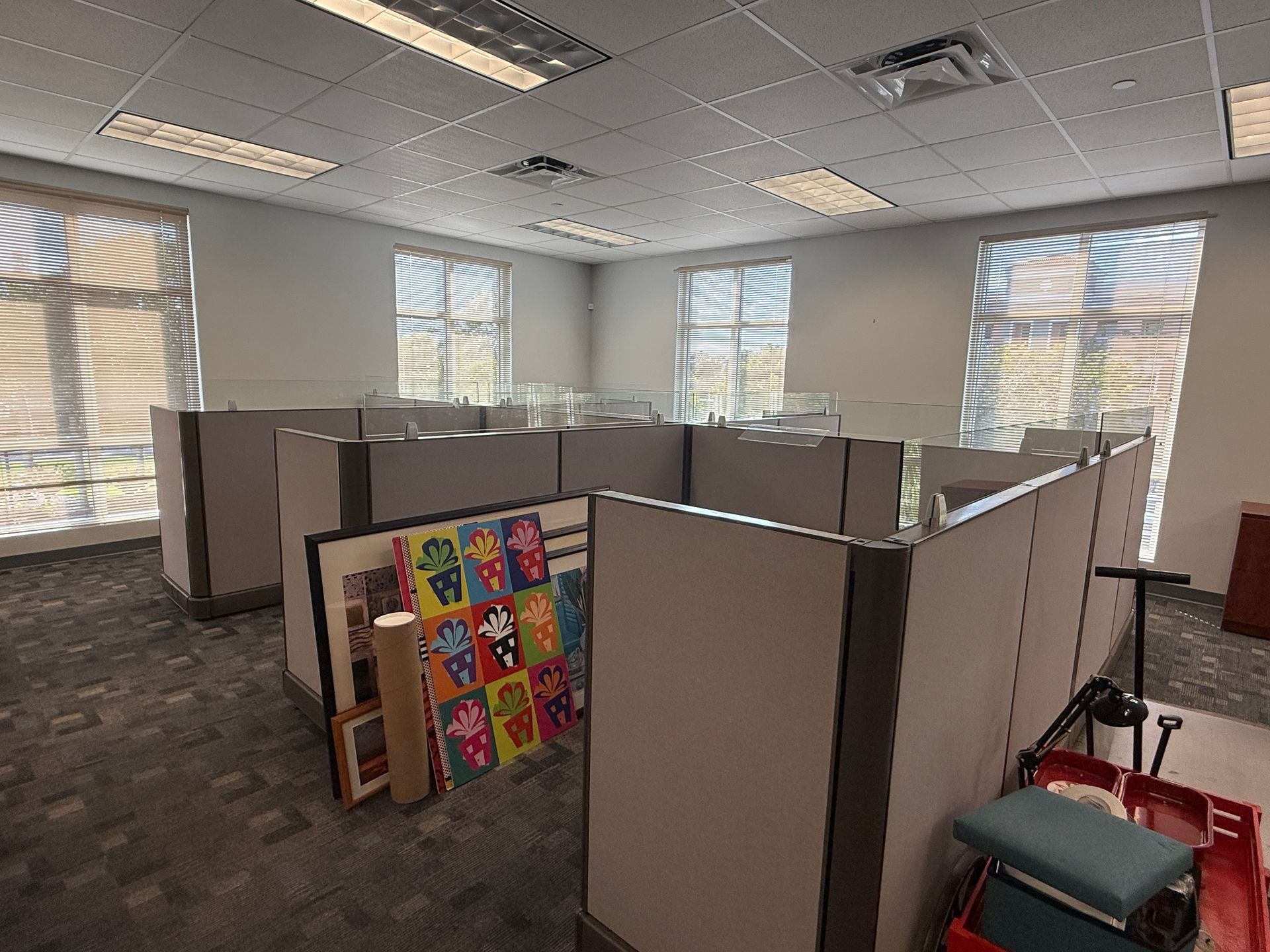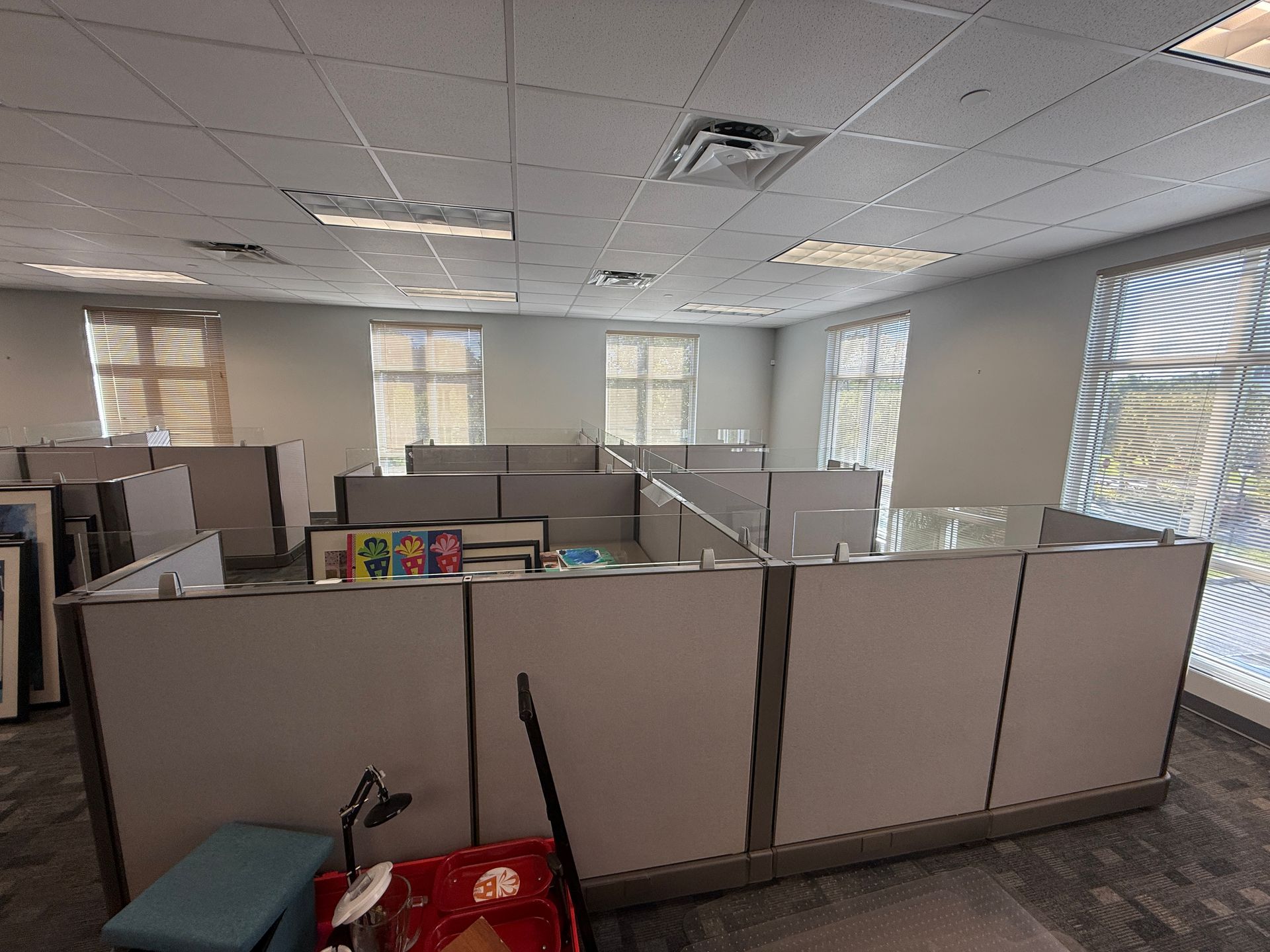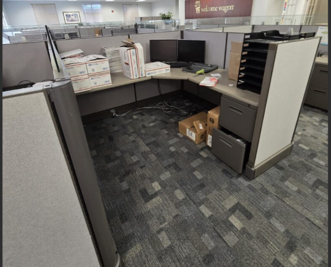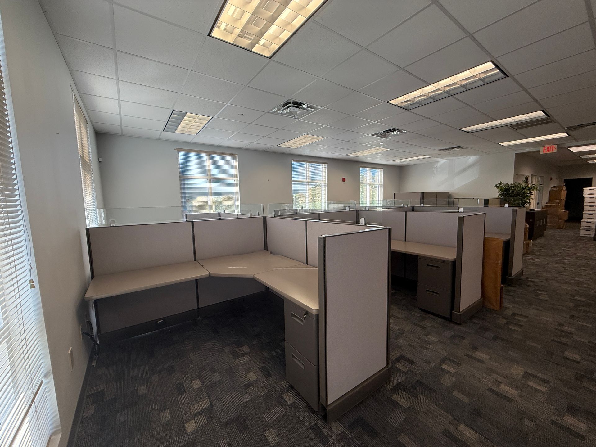 Set of eighteen, Herman Miller A02 cubicles, 72" X 72" X 48"H, file file pedestal, 6" glass toppers, powered raceways, notched corner grommets, HPL surfaces